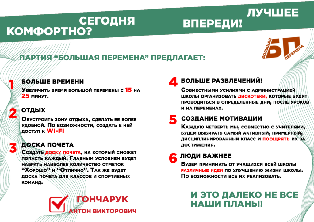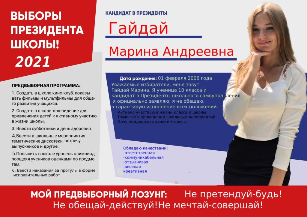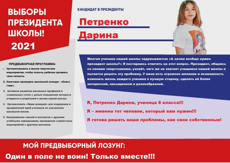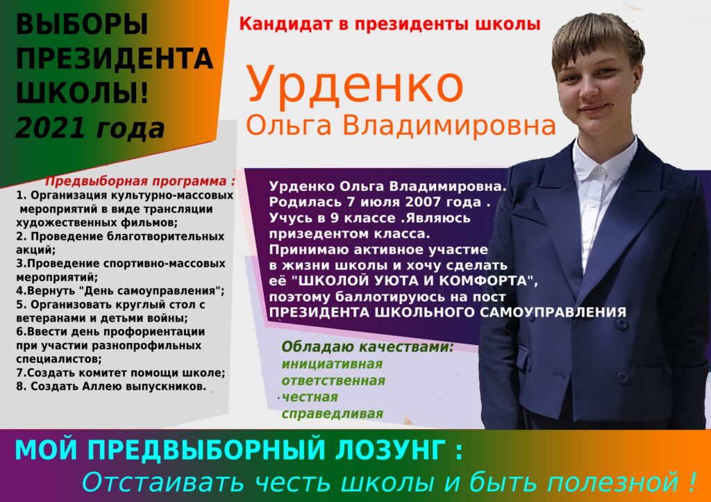 Предвыборные программы кандидатов в Президенты совета старшеклассников ученического самоуправления