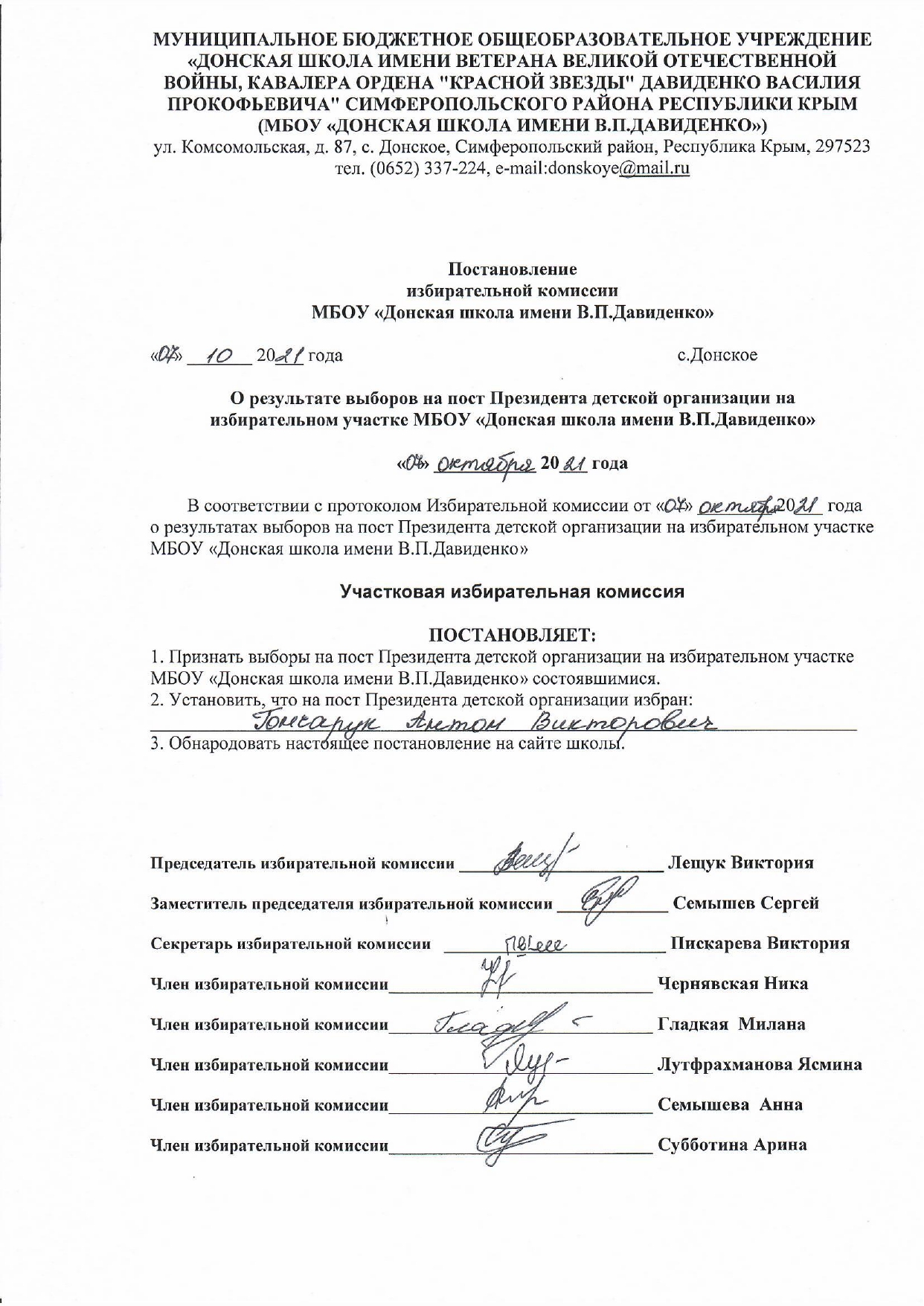 МБОУ “Донская школа им. В.П. Давиденко”
