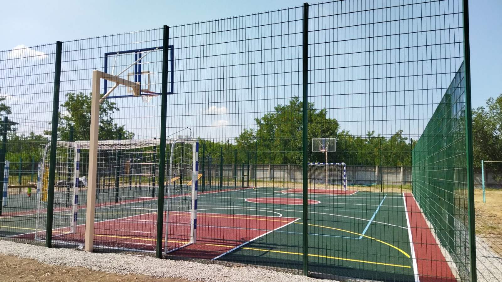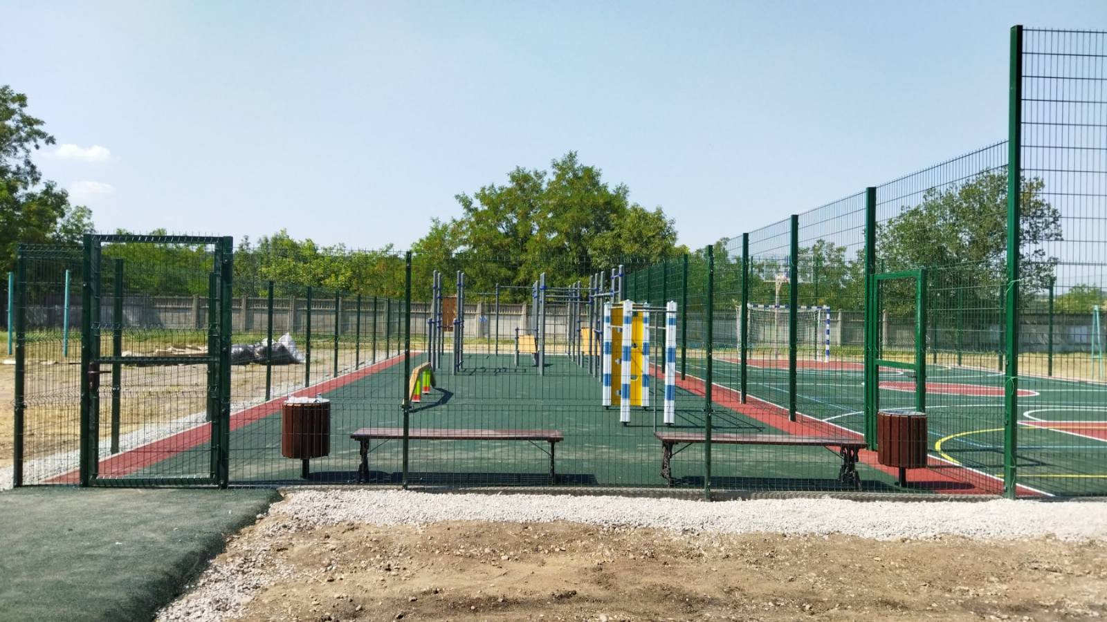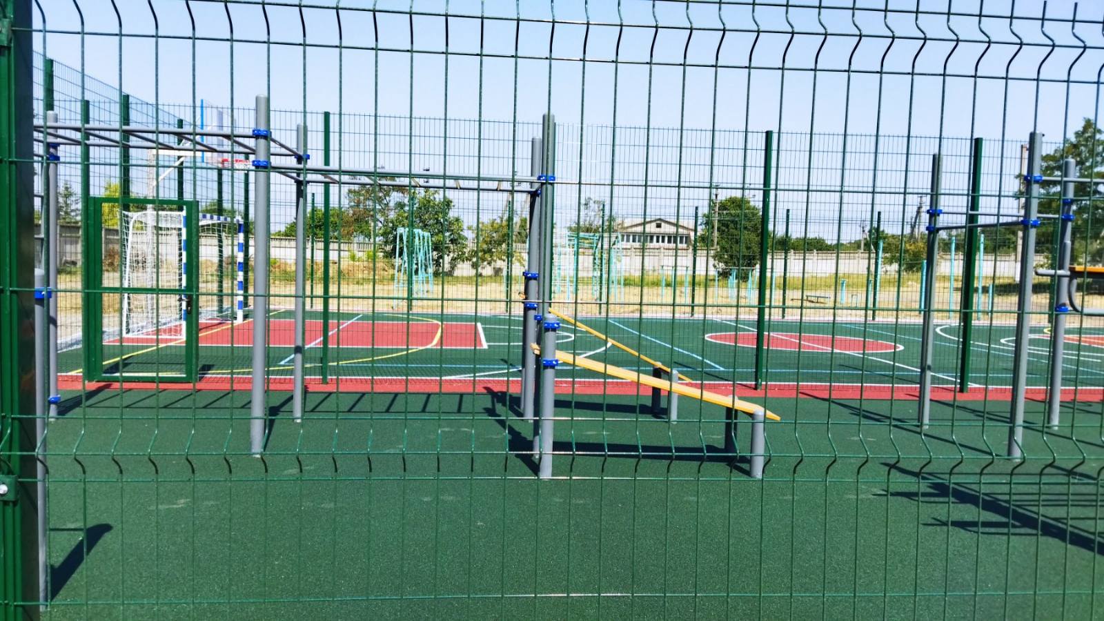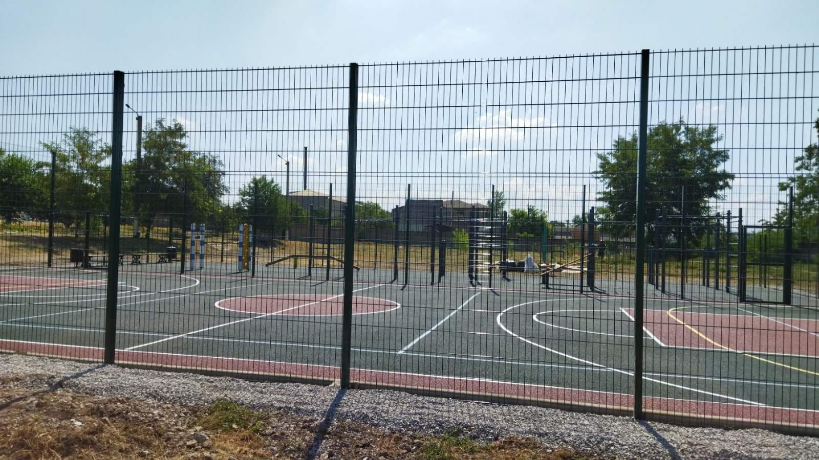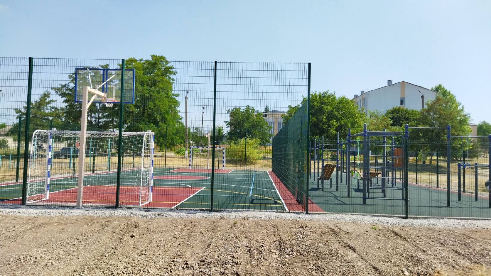 Площадь земельного участка – 2,4 га. На территории школы расположены зона отдыха, площадью 100 кв. м, детская площадка площадью 500 кв. м, спортивная площадка площадью 480 кв. м., площадка для торжественных мероприятий площадью 800 кв. м, которые используются для организации подвижных игр и отдыха обучающихся, а также для реализации образовательных программ, предусматривающих проведение мероприятий на свежем отдыхе.